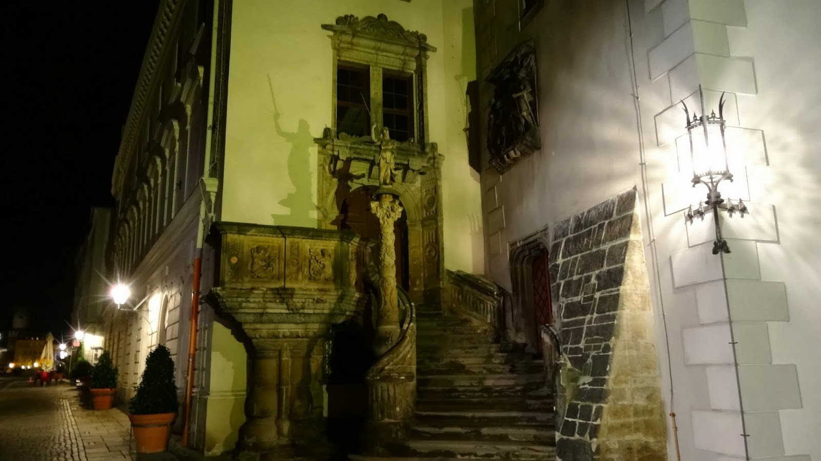Lange müssen wir nicht suchen, denn das Wetter setzt gerade sein Bestreben fort, sich unbeliebt zu machen. Den ganzen Tag war es schon trübe. Na wenigstens trocken ist es geblieben. Und während sich Andrea einen Kaffee und ein Stück Obstkuchen einverleibt, genieße ich ein frisch gezapftes Landskron Bier aus Görlitz. Doch wenn man so sitzt, ist es doch schon empfindlich kalt und so bezahlen wir rasch und gehen zurück zur Herberge. Dort laufen schon die ersten Hochrechnungen zur Bundestagswahl und es zeichnet sich wiederum ein Sieg für die CDU ab. Dem Land hätte ich eine absolute Mehrheit gewünscht, damit sich mal was bewegt und damit mal jemand wirkliche Verantwortung übernimmt und nicht alles ausgesessen oder die Schuld auf den Koalitionspartner geschoben wird. Doch Schluss damit, Fernseher aus. Ich gehe nochmal in die Stadt, um ein paar Fotos bei Nacht in den Kasten zu bekommen. Gar nicht so einfach, denn die Görlitzer Altstadt ist so authentisch, dass sie auch recht spärlich beleuchtet ist.