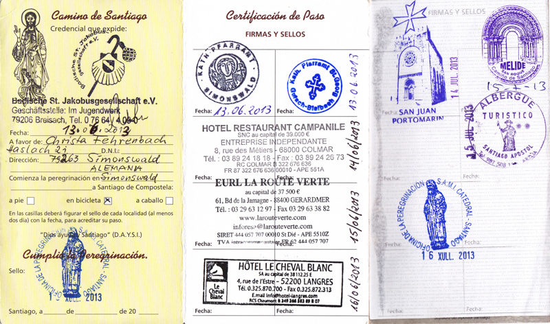 Also Pilgerpass aus der Innentasche der Überjacke raus und auf einen Tisch gelegt.